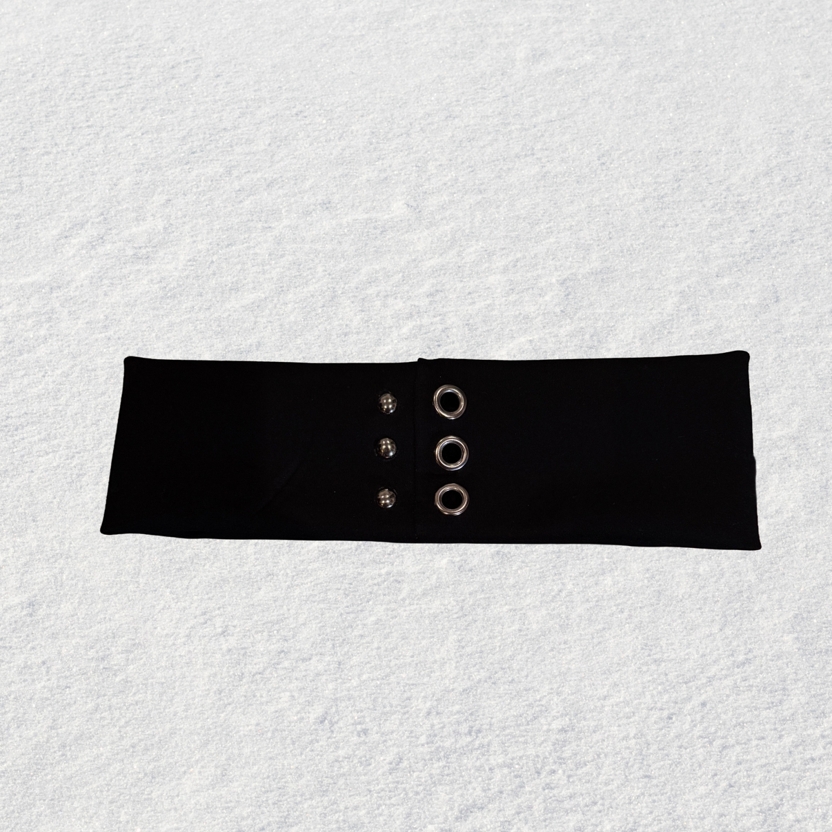 Two personalities, one headband. Alter Ego combines our winter core column structure with grommets on one side and studs on the other, creating a dual texture contrast that feels sharp and unexpected. Built on our closed-hardware base (with the same hidden interior reinforcement), this style keeps its shape and stays put while giving you a more editorial, asymmetric look.